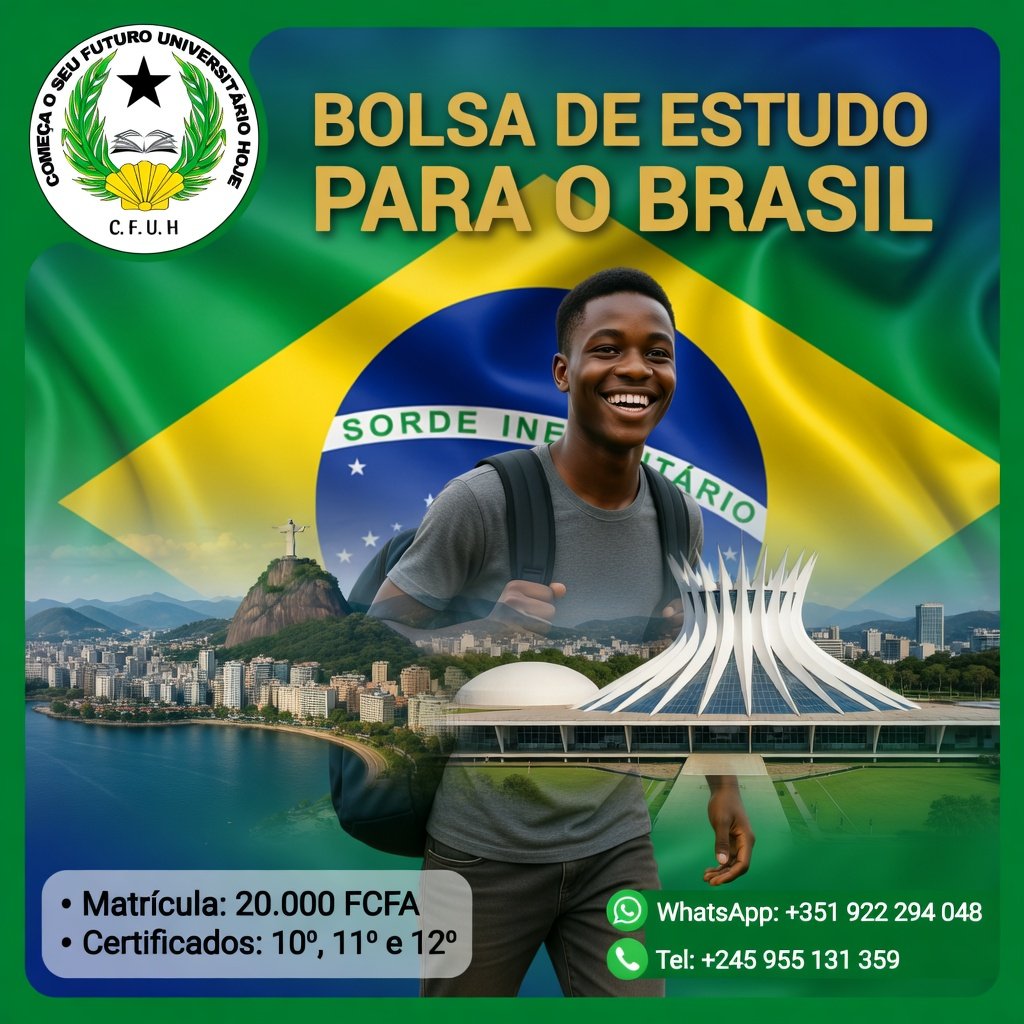 A organização Começa o seu Futuro Universitário Hoje (CFUH) tem o prazer de anunciar a abertura de vagas exclusivas para bolsas de estudo no Brasil. Esta é a oportunidade que faltava para os jovens guineenses que aspiram a uma formação internacional de qualidade e a uma visão global de mercado.
